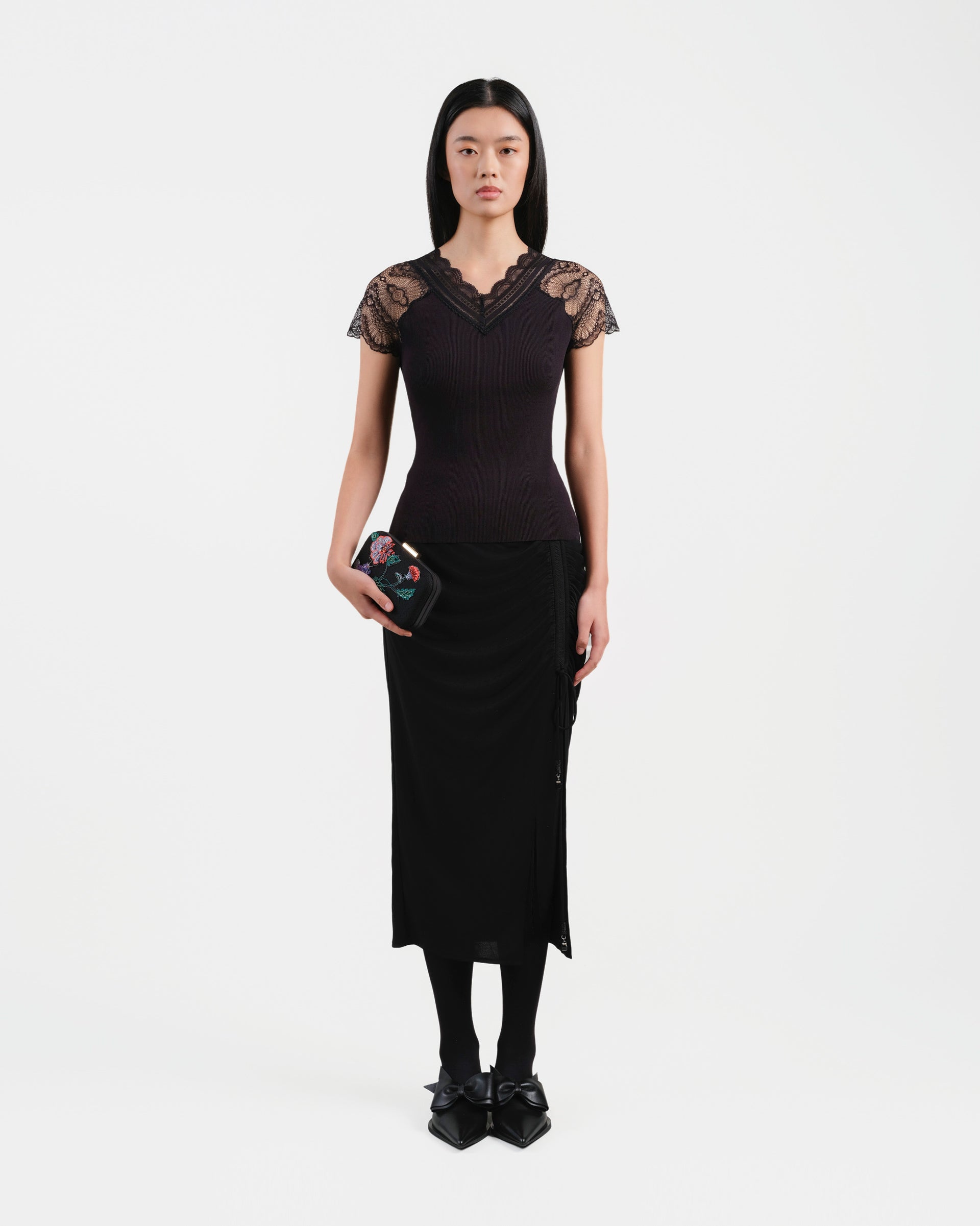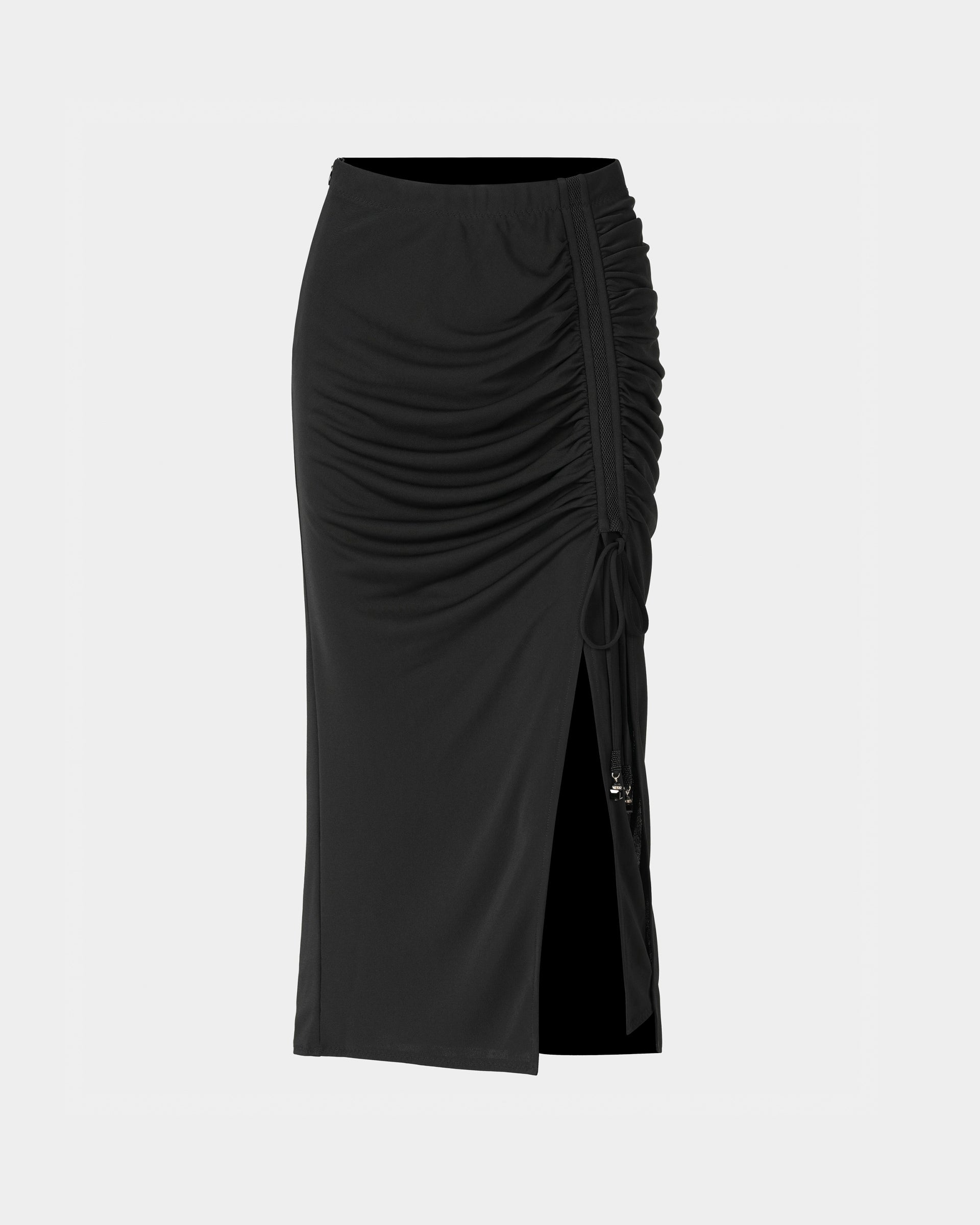 Black Ruched Midi Skirt