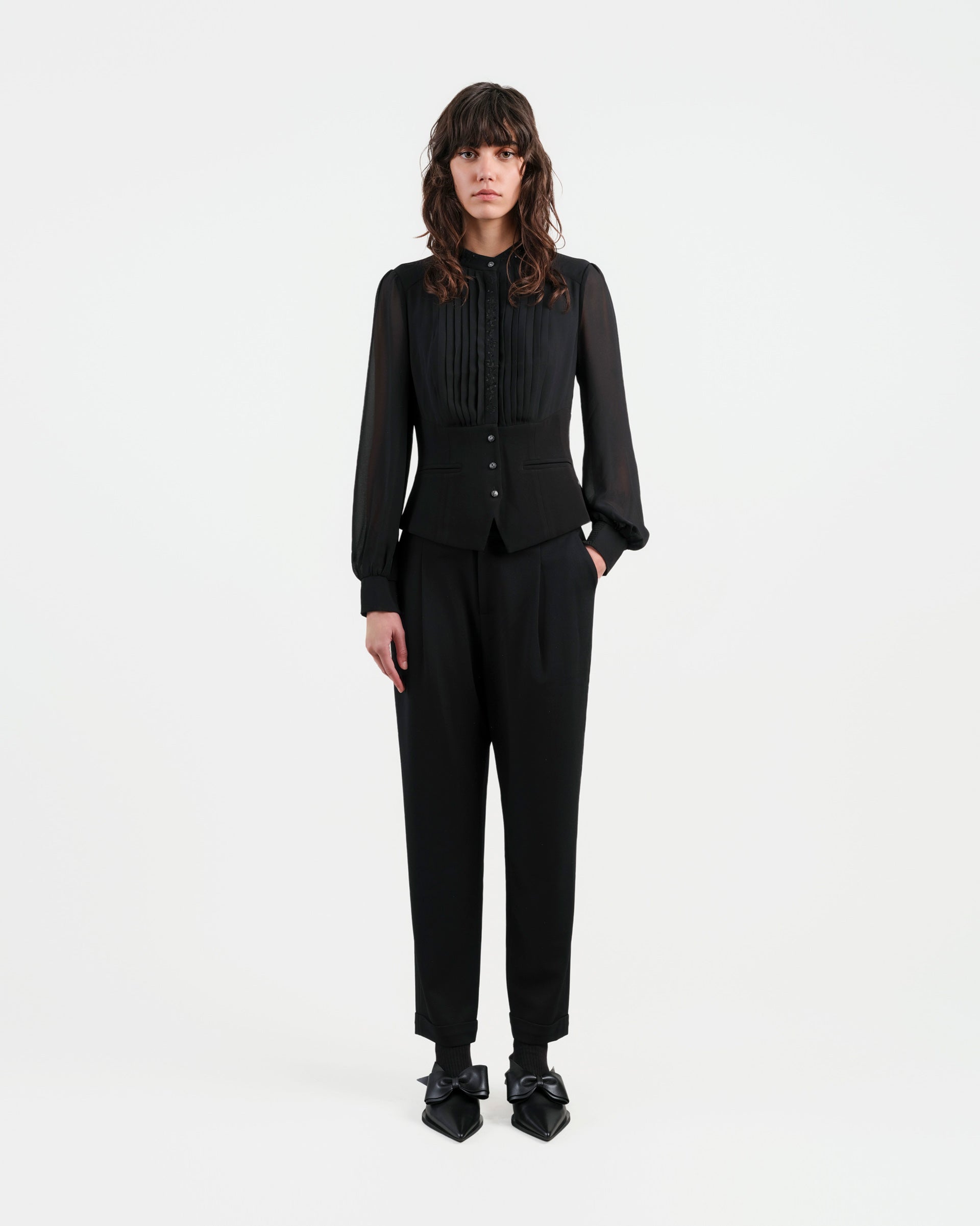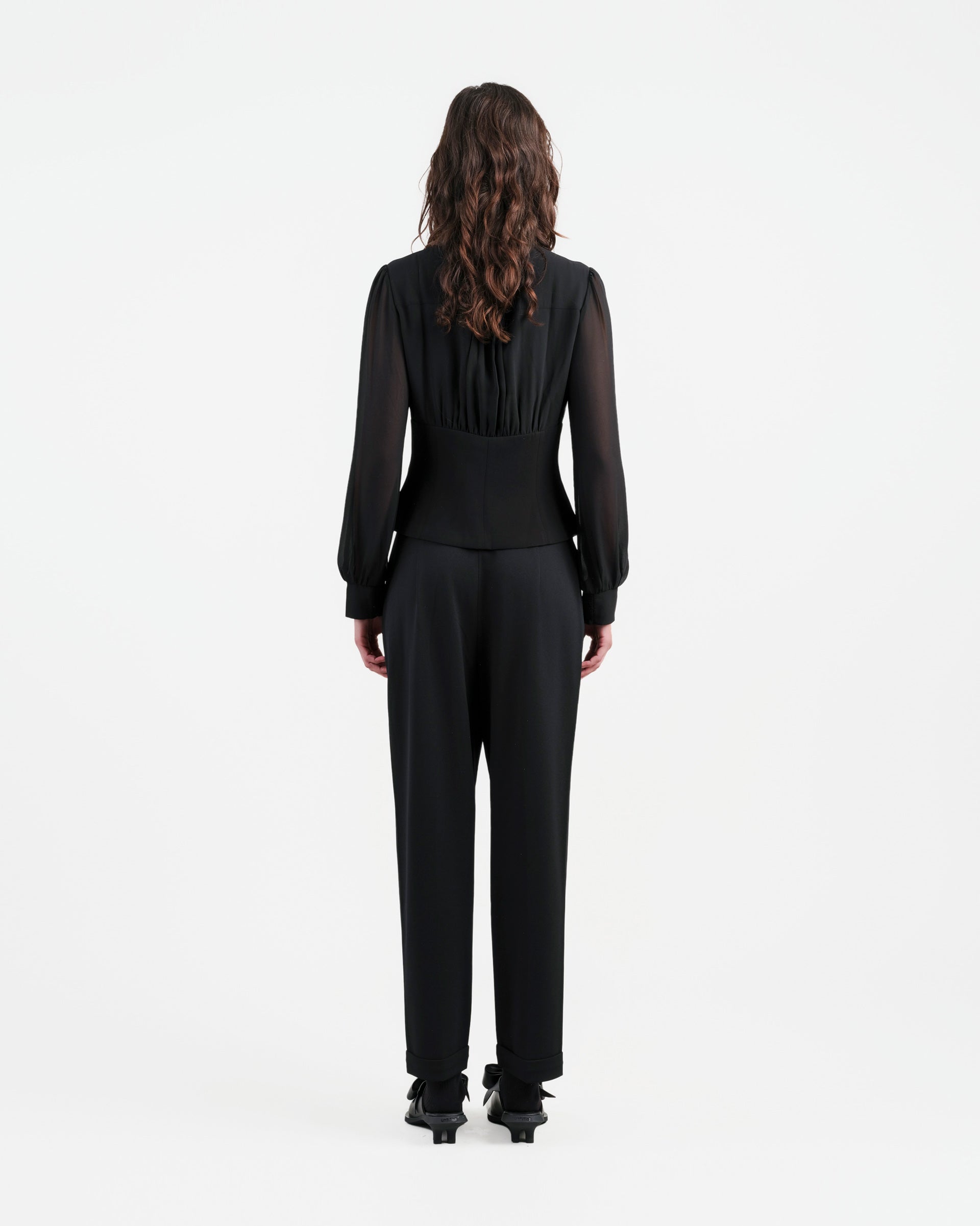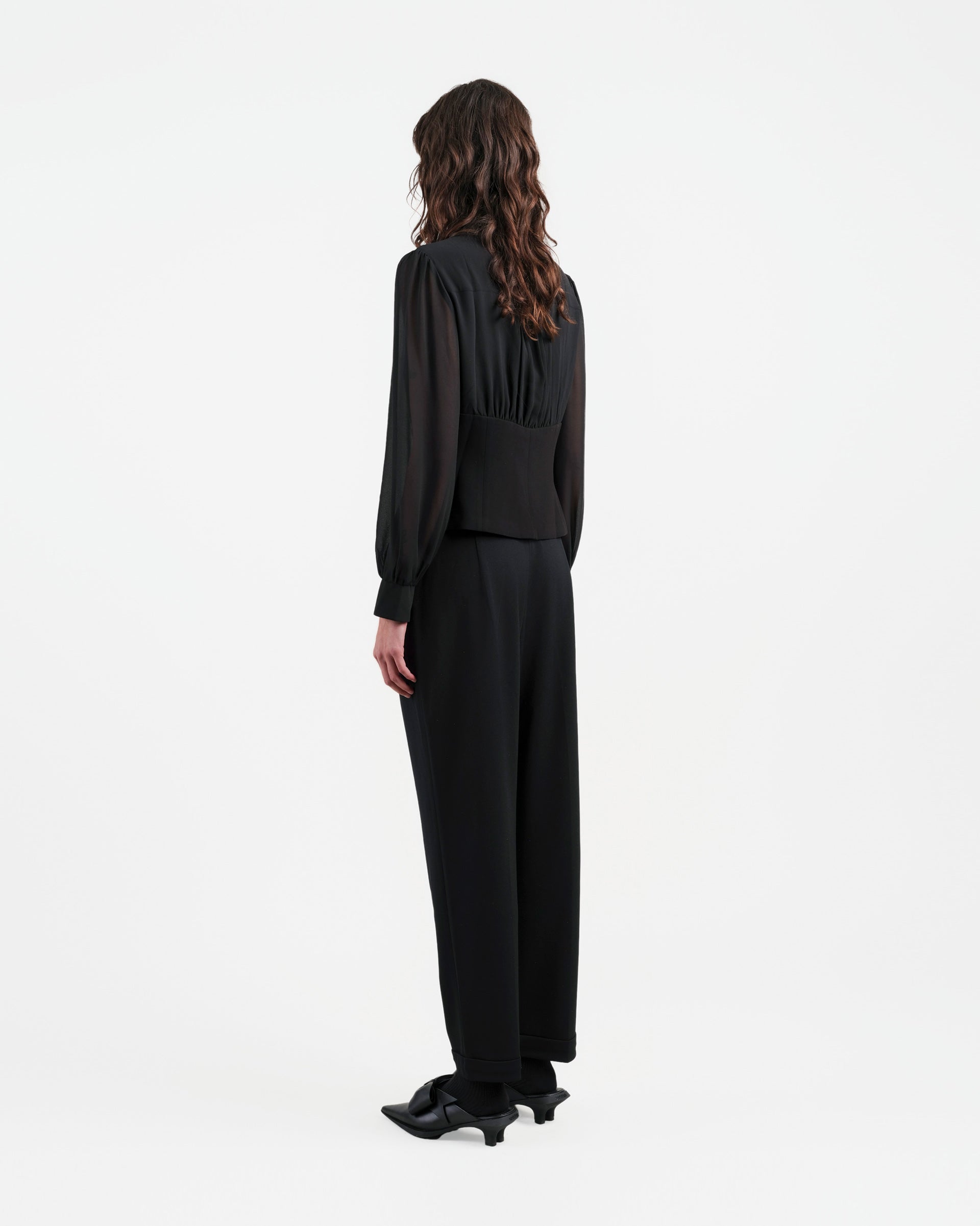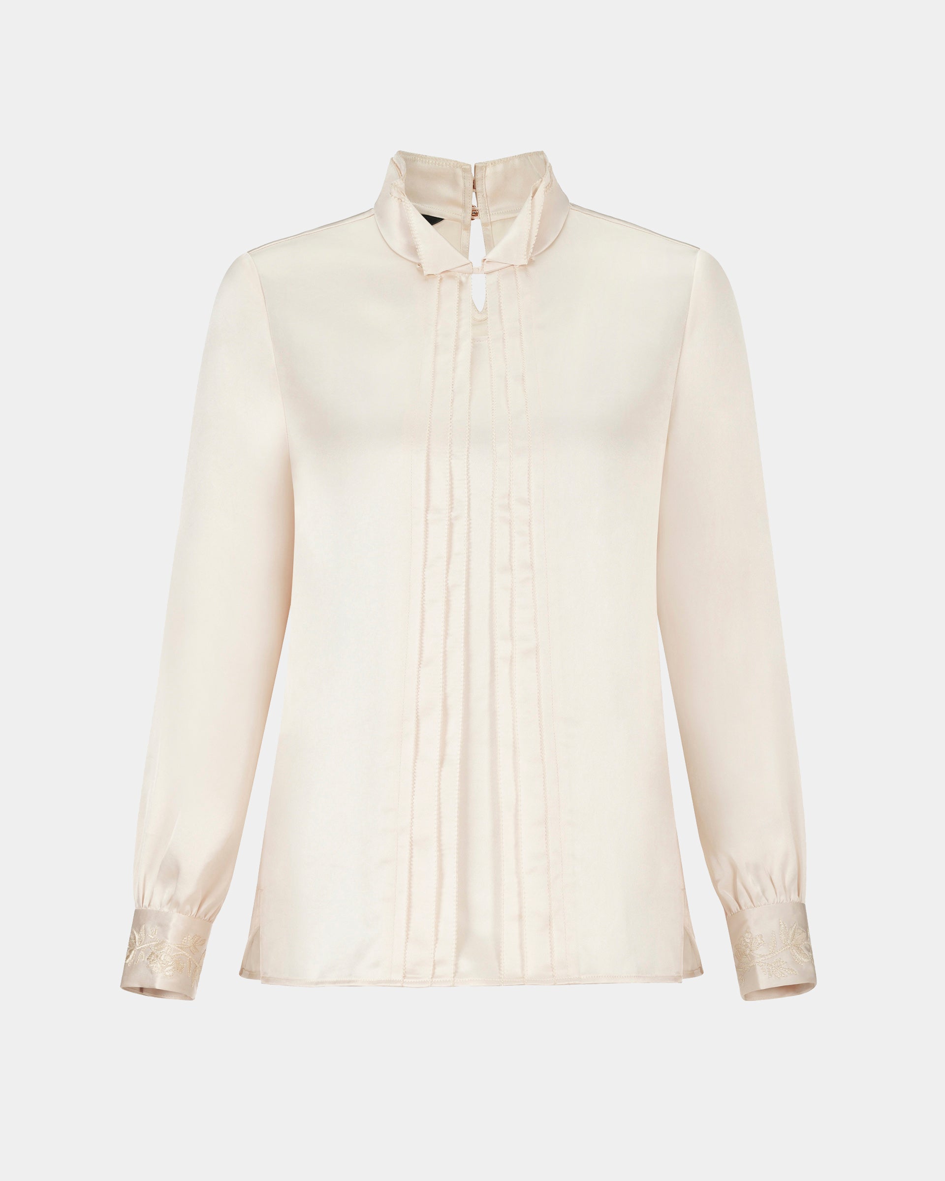 Sculpted Collar Long-Sleeve Blouse
