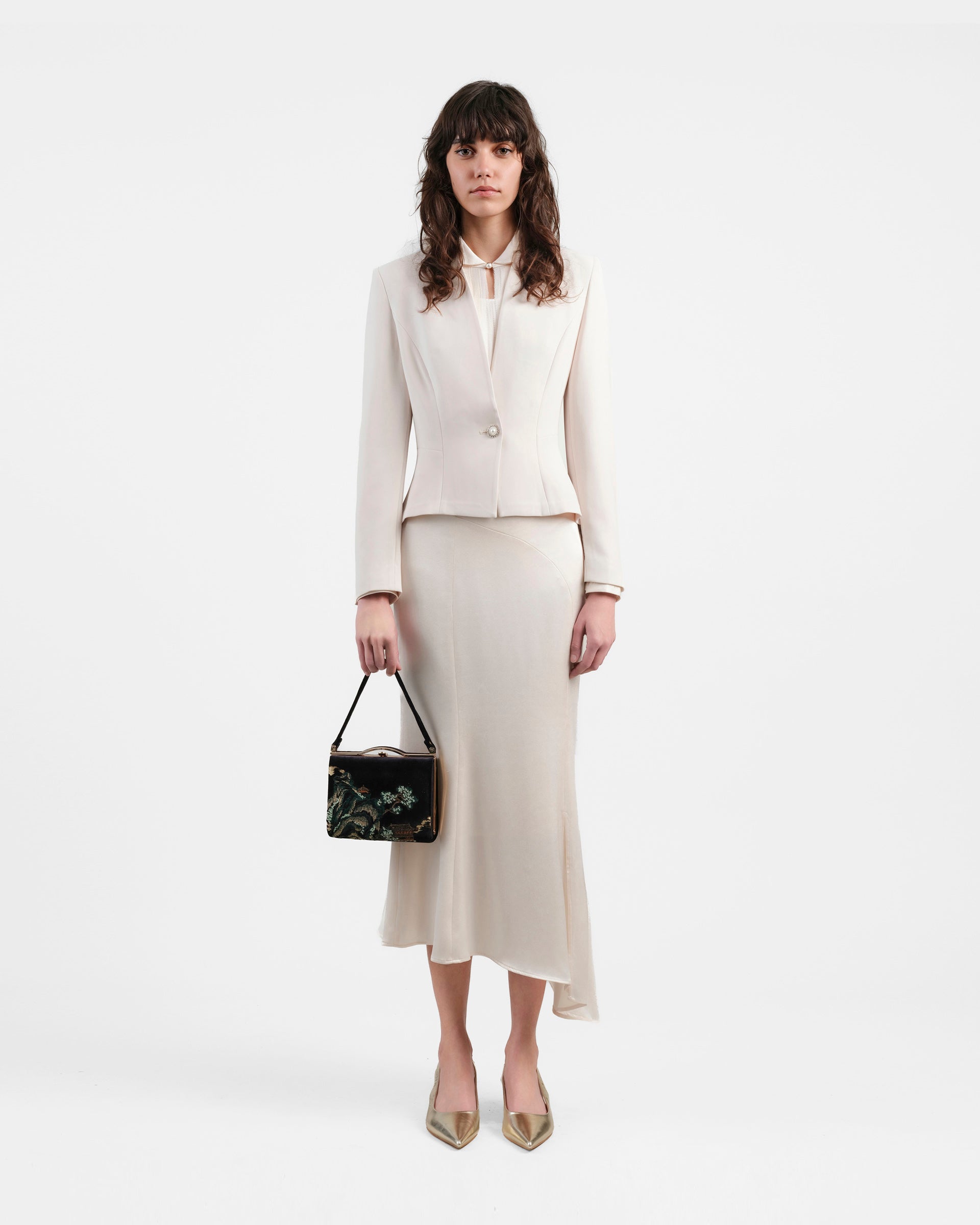 Ivory Bamboo-Clasp Blazer