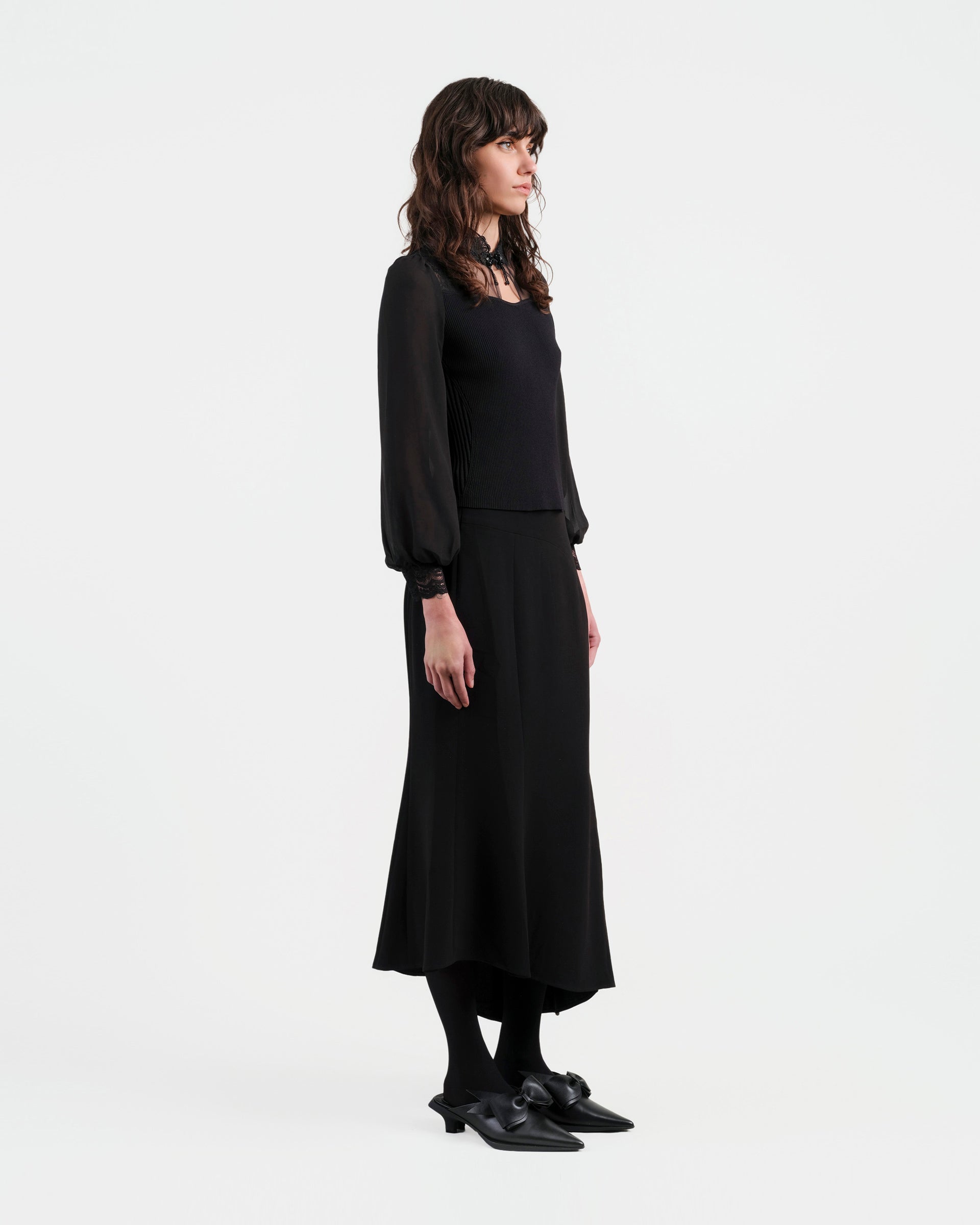 Black Fish-Tail Midi Skirt